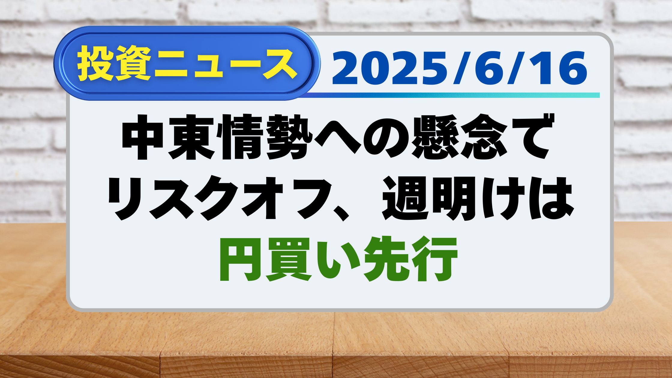 【投資ニュース】中東情勢への懸念でリスクオフ、週明けは円買い先行(6/16)