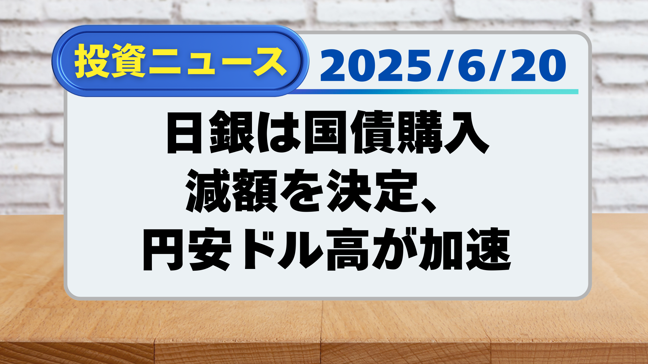 【投資ニュース】日銀は国債購入減額を決定、円安ドル高が加速(6/20)