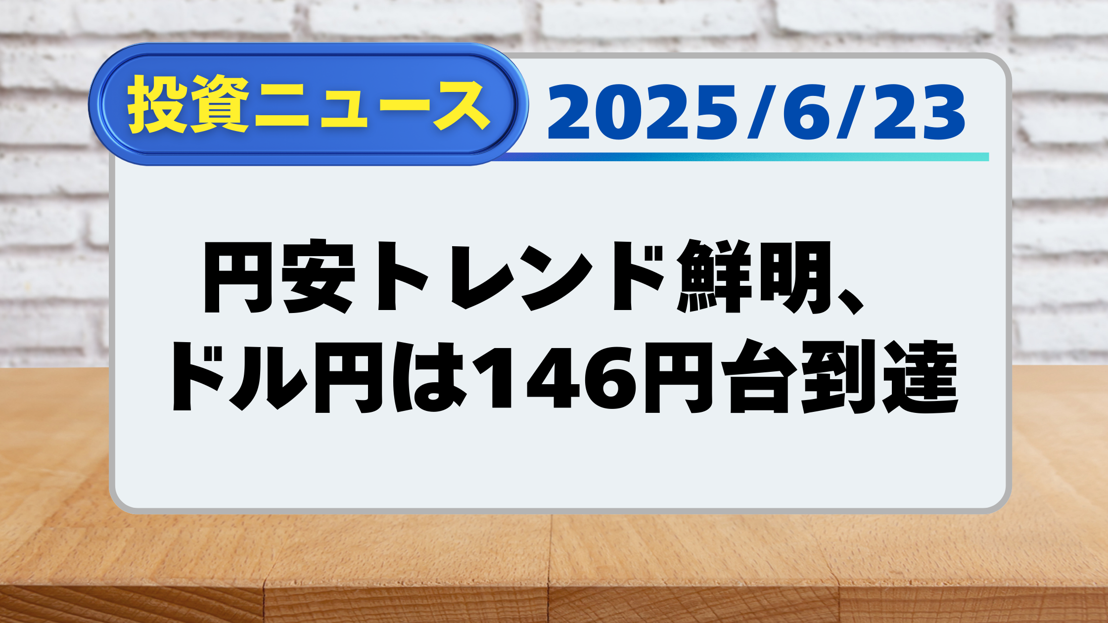【投資ニュース】円安トレンド鮮明、ドル円は146円台到達(6/23)