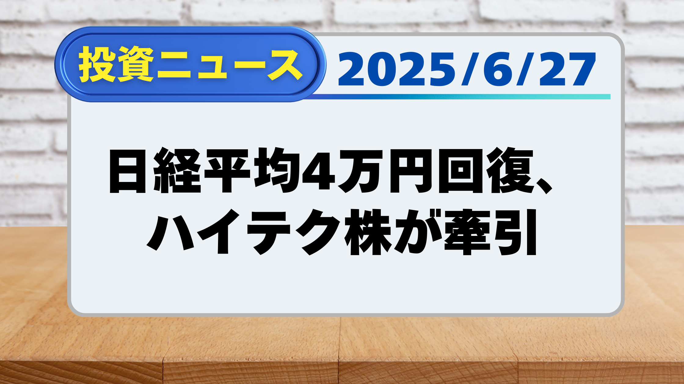 【投資ニュース】日経平均4万円回復、ハイテク株が牽引(6/27)