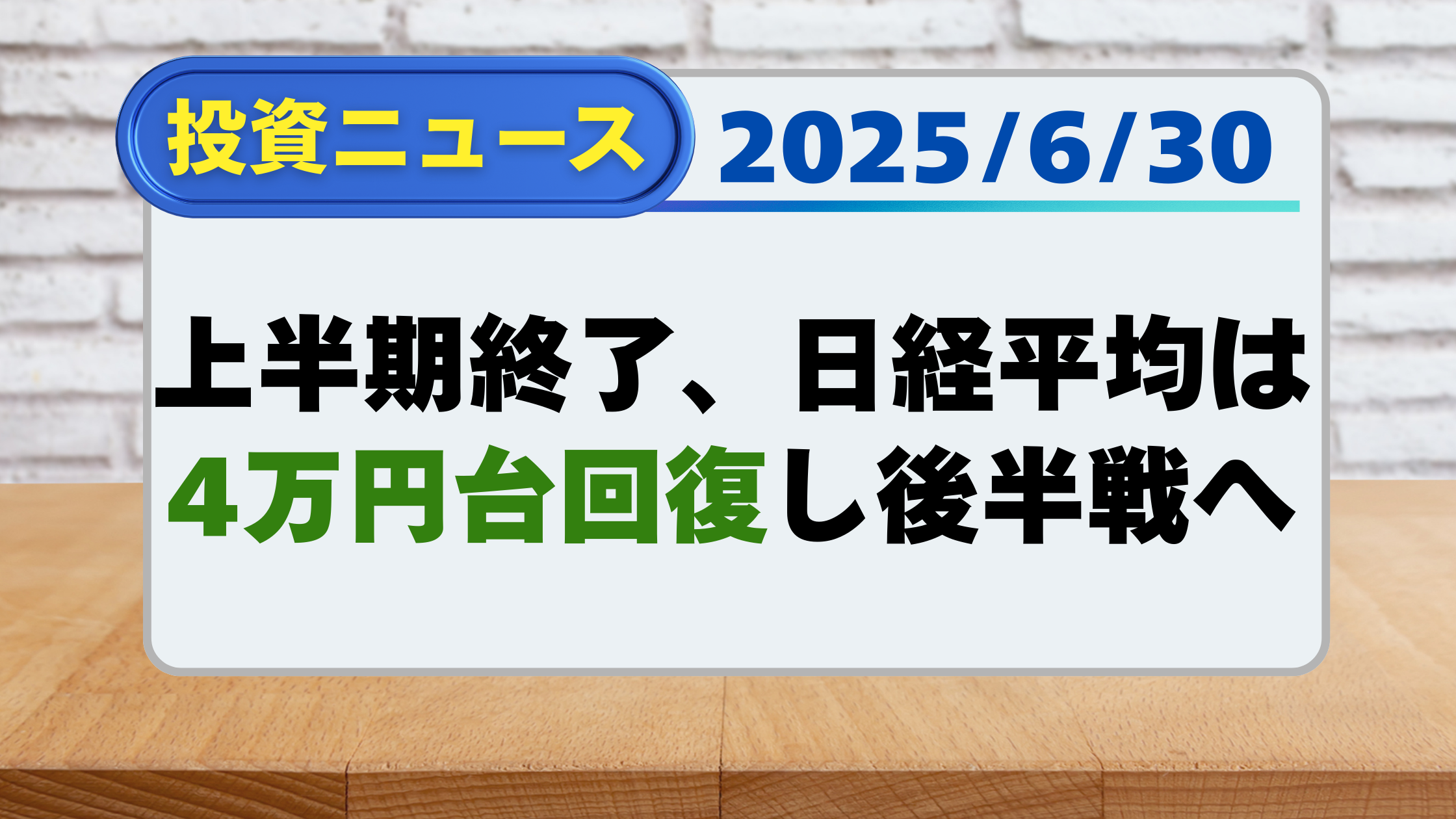 【投資ニュース】上半期終了、日経平均は4万円台回復し後半戦へ(6/30)