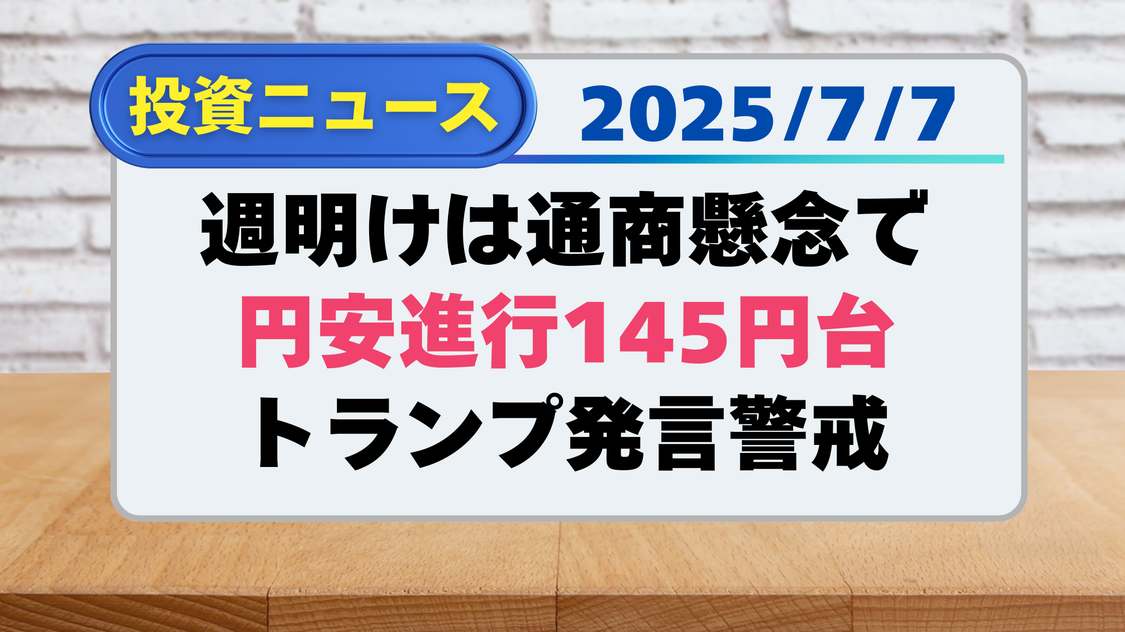 【投資ニュース】週明けは通商懸念で円安進行145円台、トランプ発言警戒(7/7)