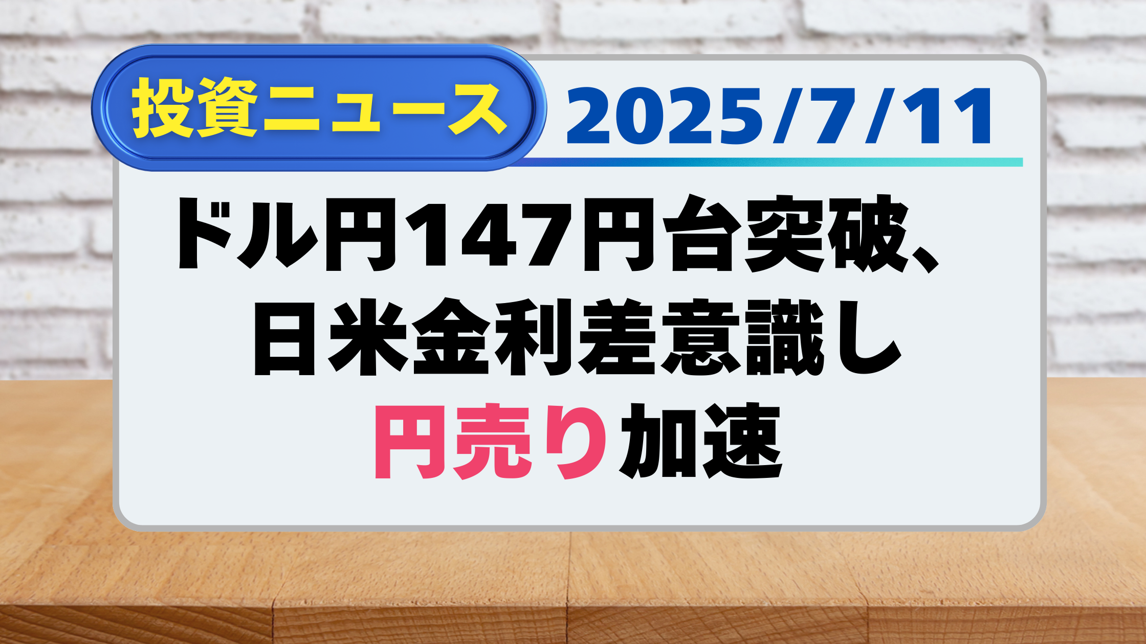 【投資ニュース】ドル円147円台突破、日米金利差意識し円売り加速(7/11)