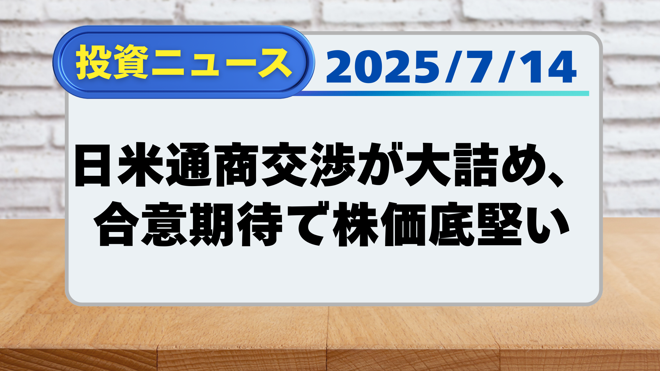 【投資ニュース】日米通商交渉が大詰め、合意期待で株価底堅い(7/14)