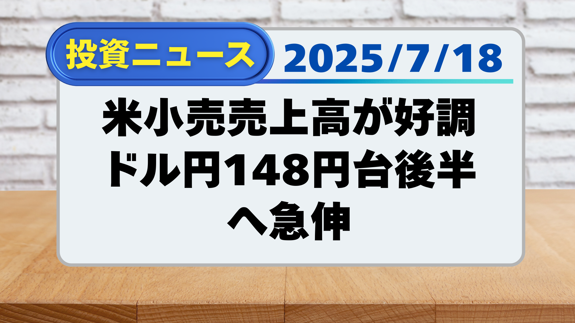 【投資ニュース】米小売売上高が好調、ドル円148円台後半へ急伸(7/18)