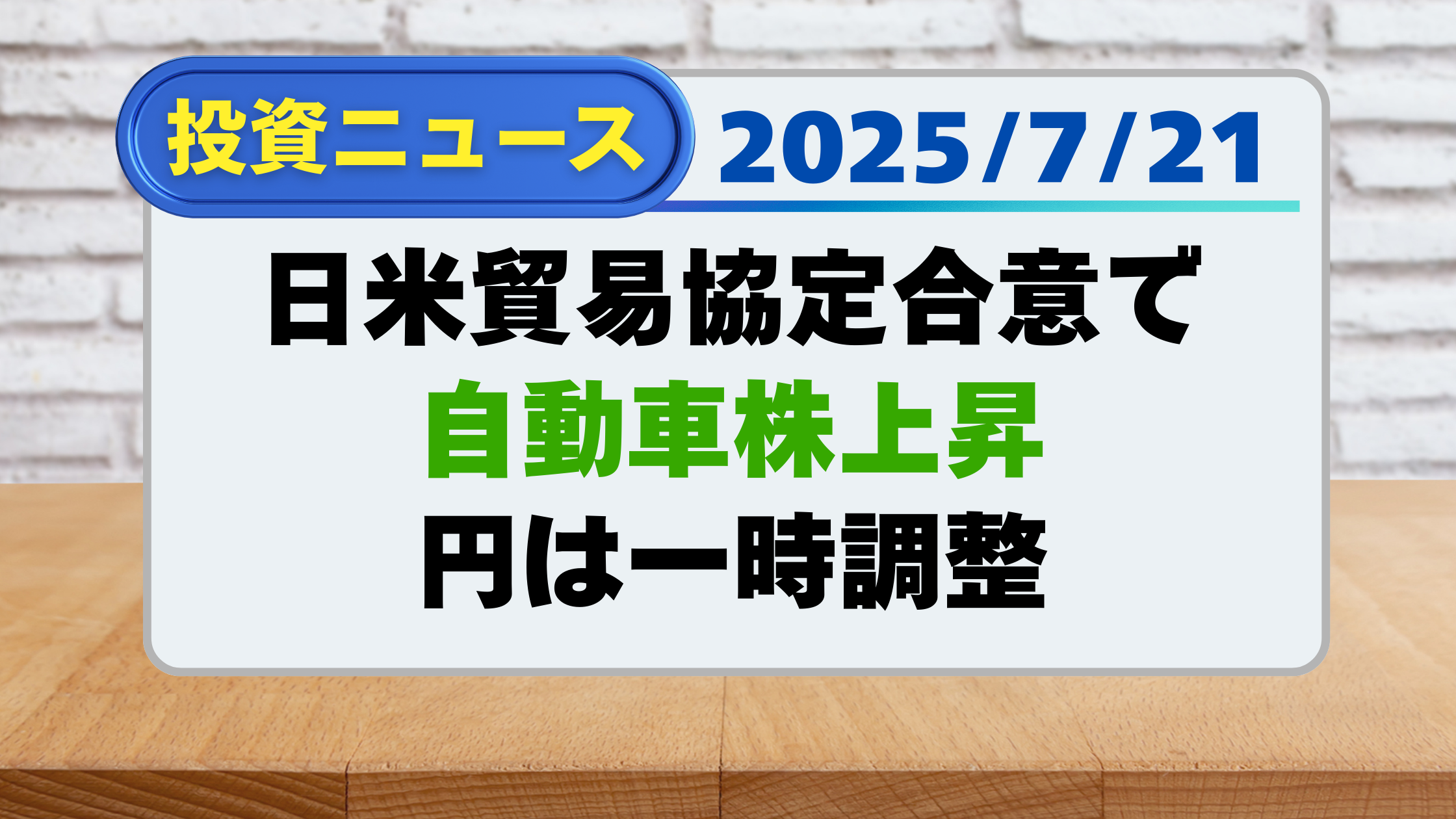 【投資ニュース】日米貿易協定合意で自動車株上昇、円は一時調整(7/21)
