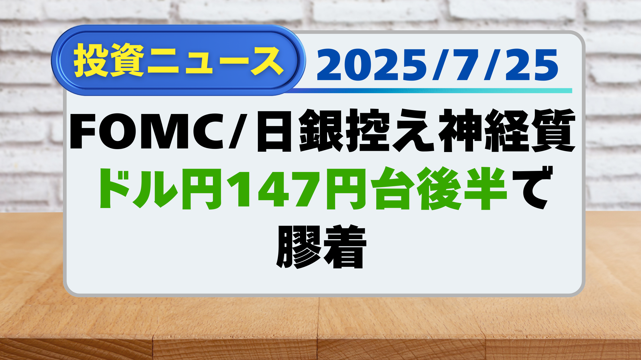 【投資ニュース】FOMC・日銀控え神経質、ドル円147円台後半で膠着(7/25)