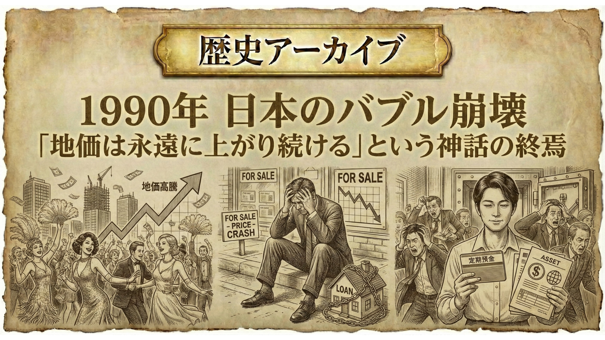 1990年 日本のバブル崩壊:「地価は永遠に上がり続ける」という神話の終焉