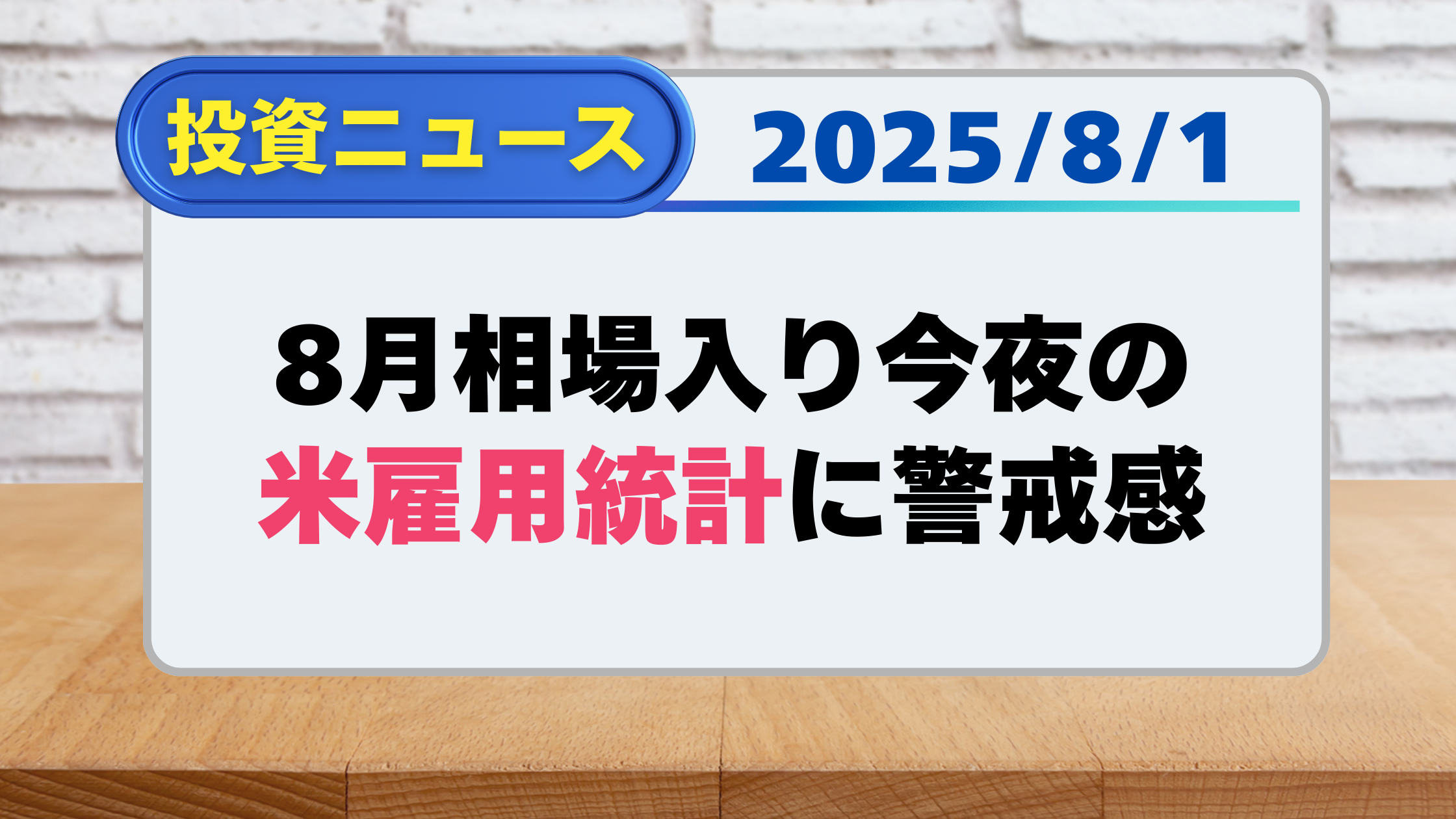 【投資ニュース】8月相場入り、今夜の米雇用統計に警戒感(8/1)