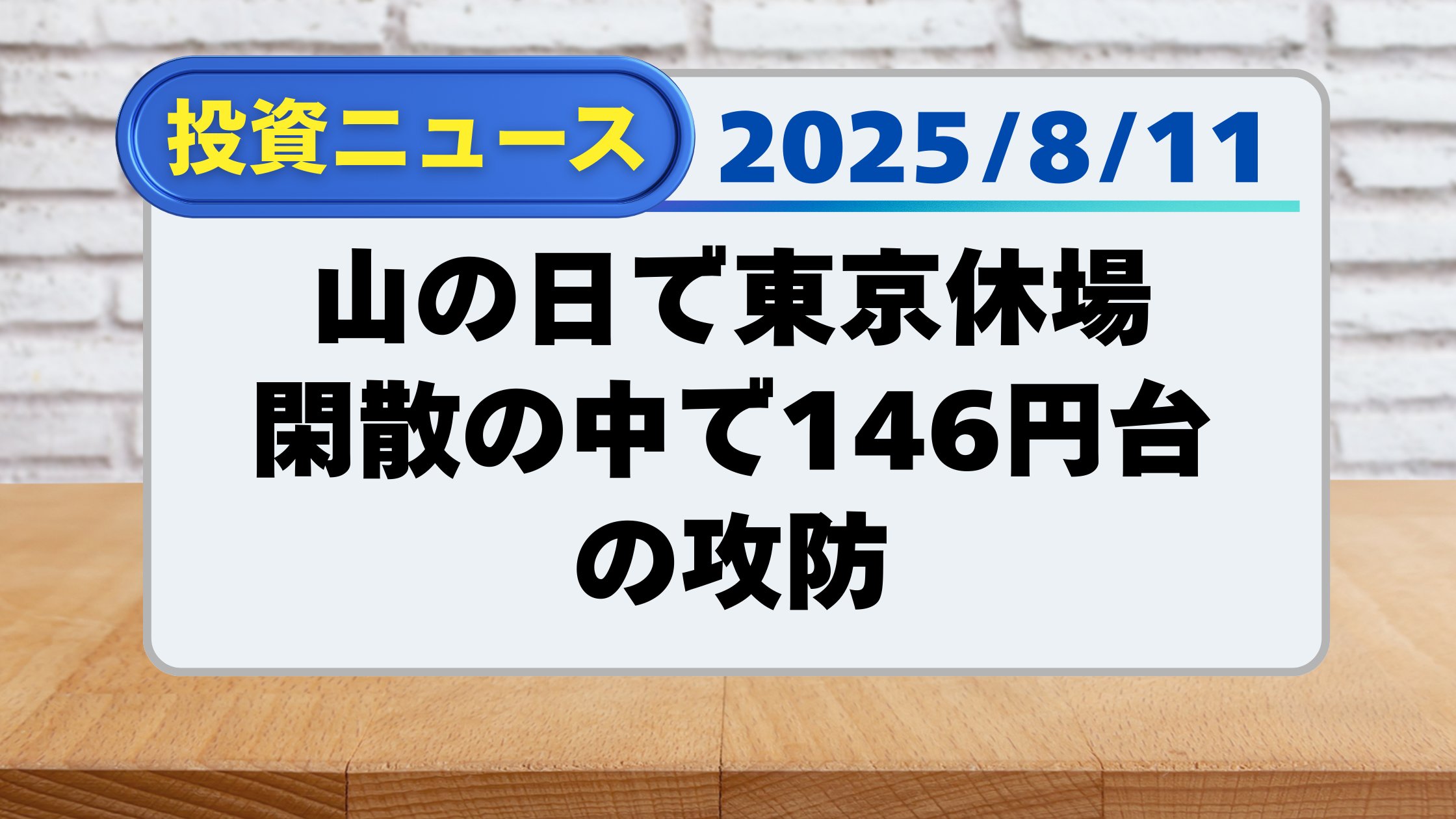 【投資ニュース】山の日で東京休場、閑散の中で146円台の攻防(8/11)