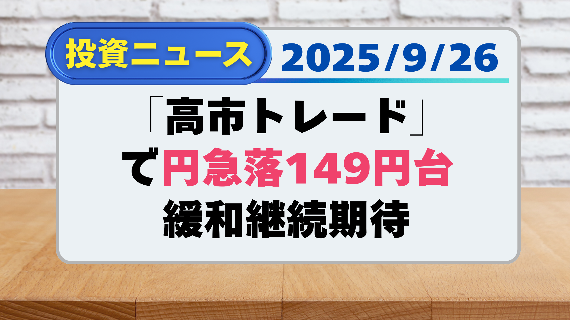 【投資ニュース】「高市トレード」で円急落149円台、緩和継続期待(9/26)