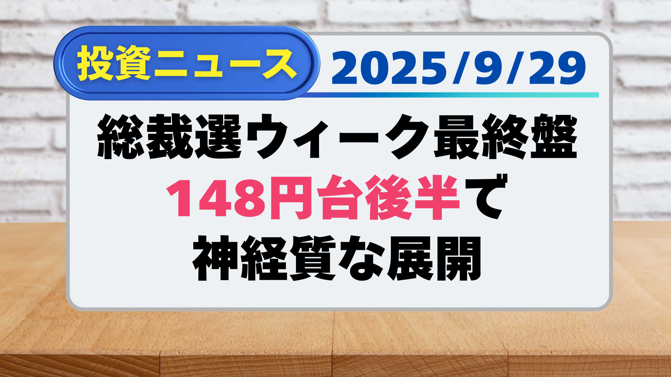 【投資ニュース】総裁選ウィーク最終盤、148円台後半で神経質な展開(9/29)
