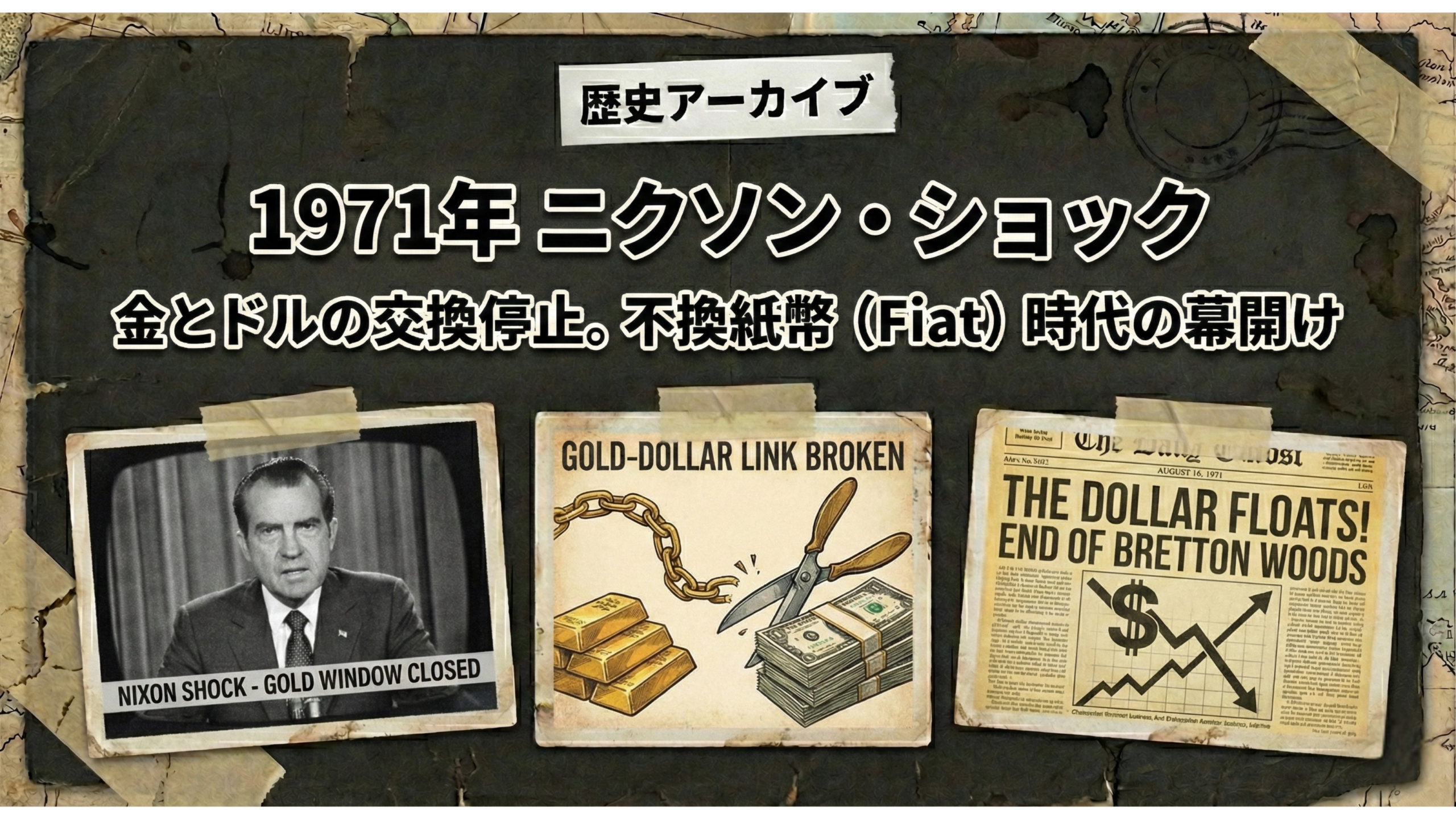 1971年 ニクソン・ショック:金とドルの交換停止。不換紙幣(Fiat)時代の幕開け