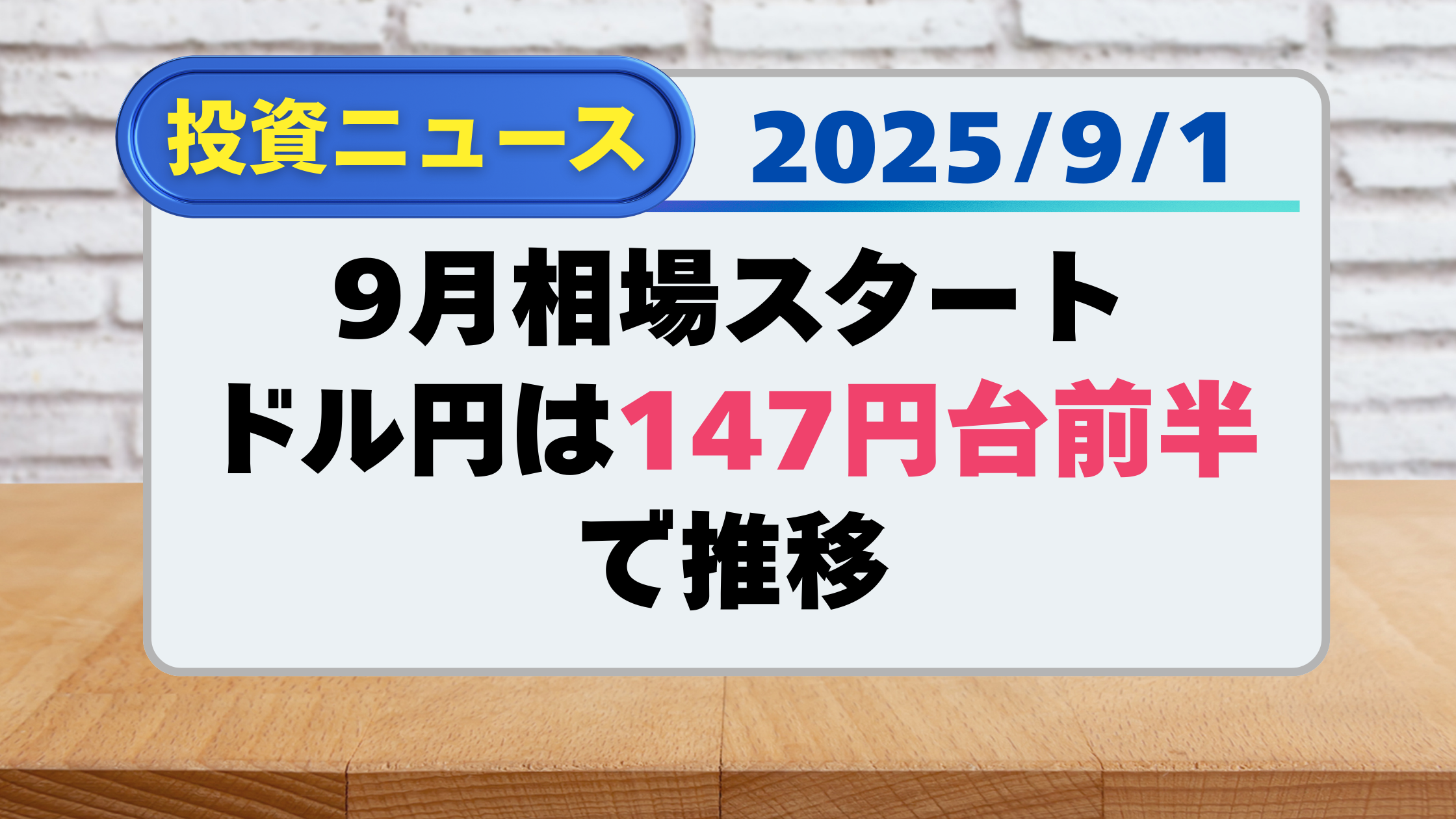 【投資ニュース】9月相場スタート、ドル円は147円台前半で推移(9/1)