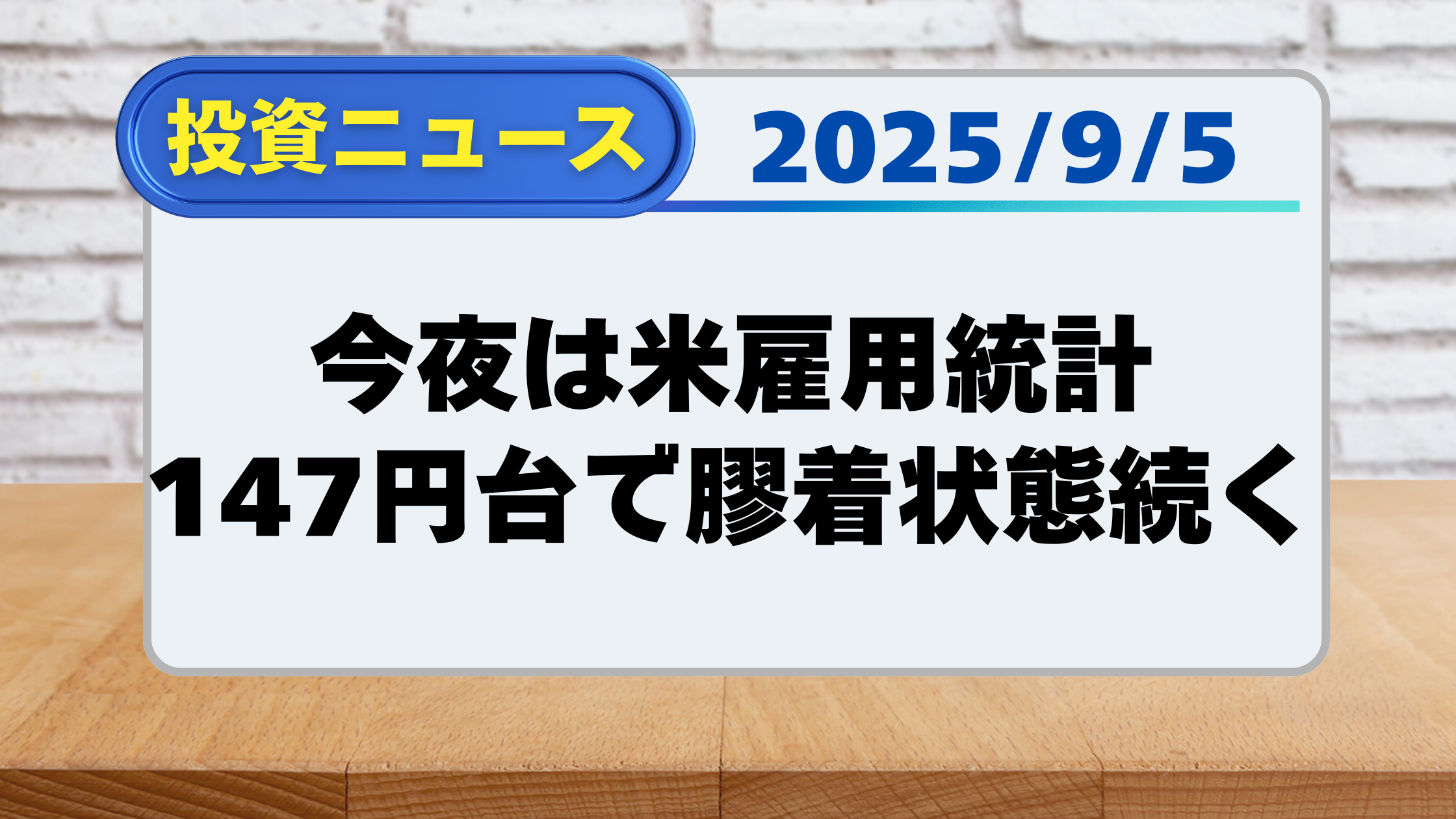 【投資ニュース】今夜は米雇用統計、147円台で膠着状態続く(9/5)