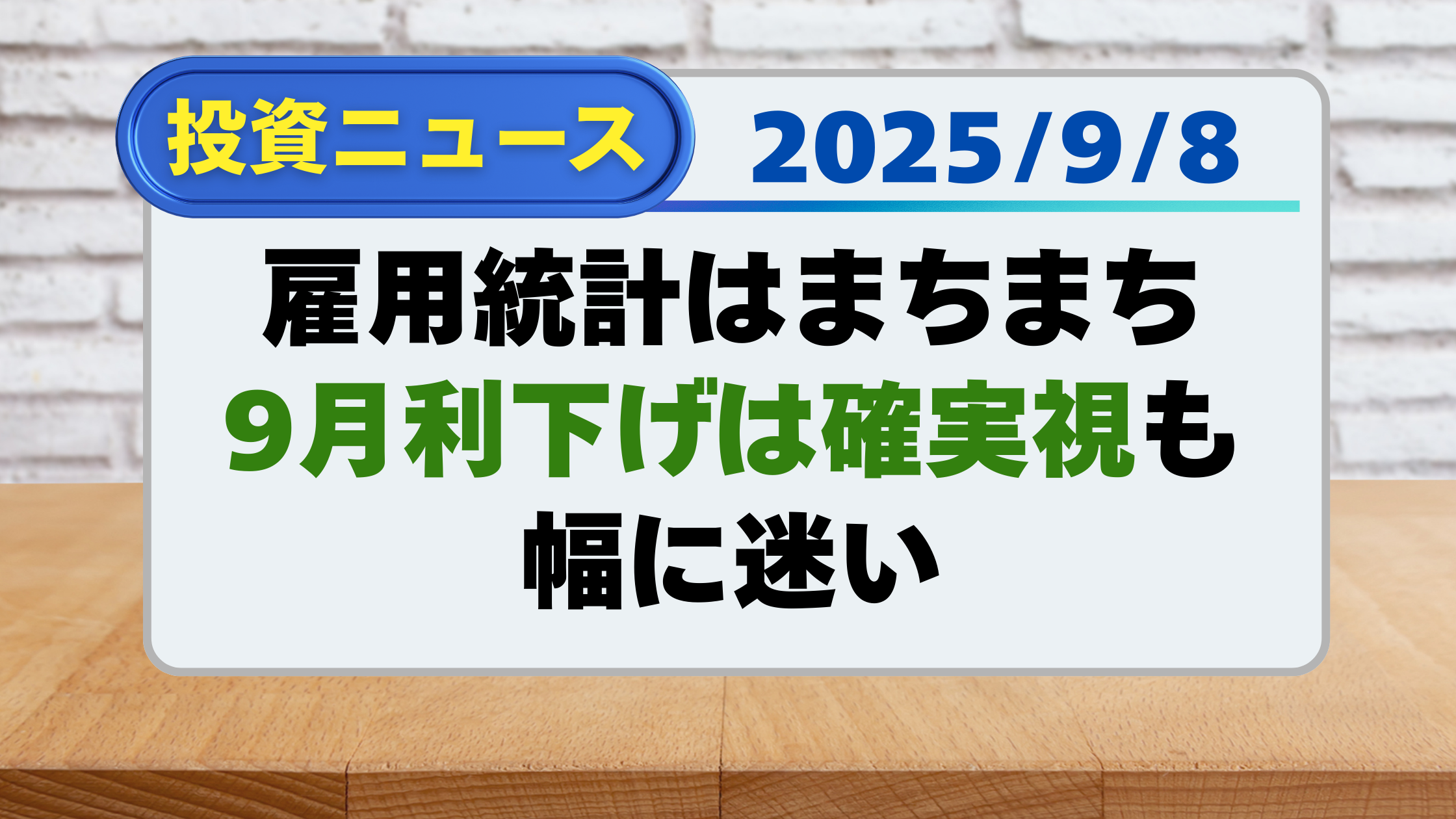 【投資ニュース】雇用統計はまちまち、9月利下げは確実視も幅に迷い(9/8)