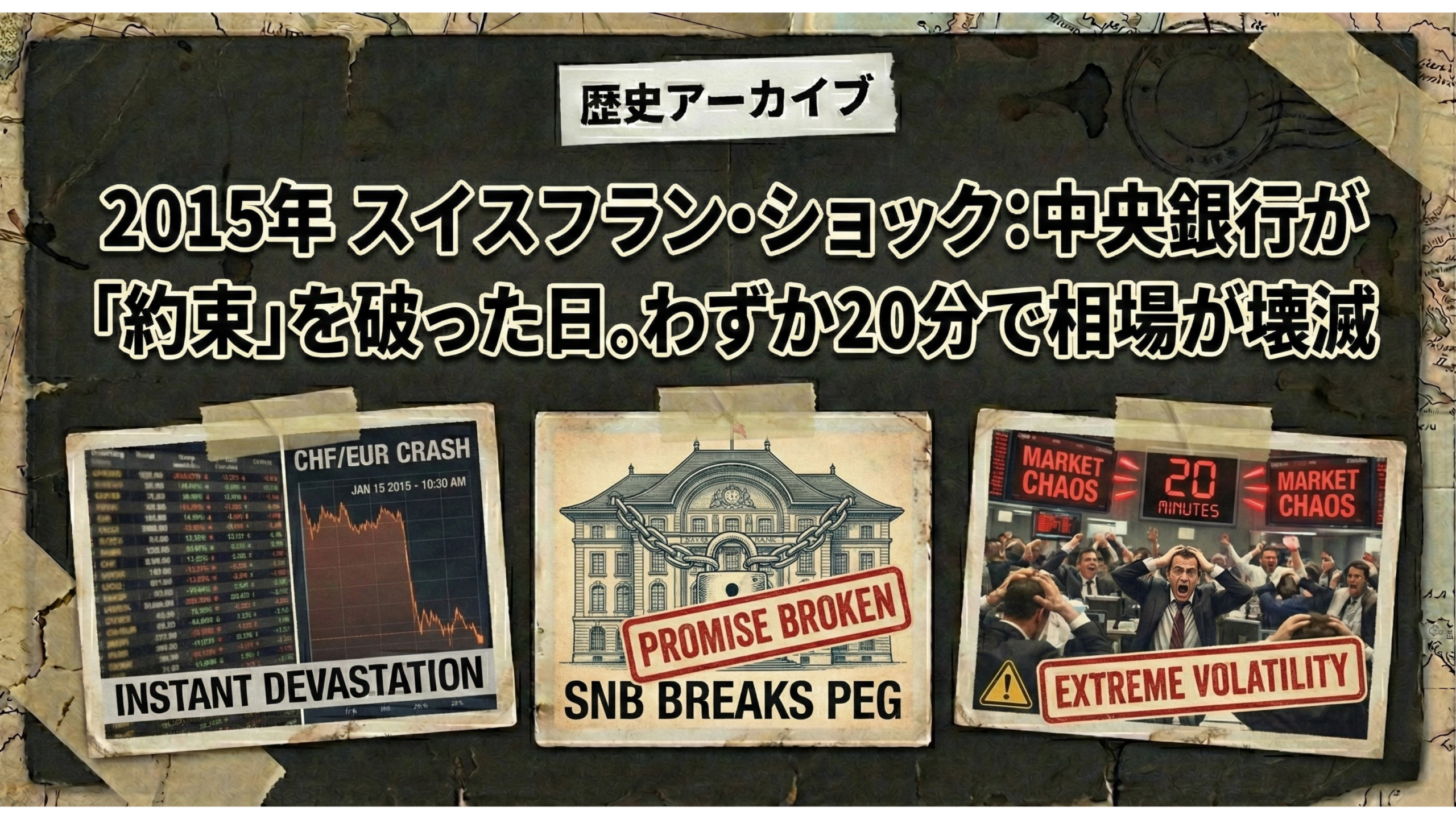 2015年 スイスフラン・ショック:中央銀行が「約束」を破った日。わずか20分で相場が壊滅