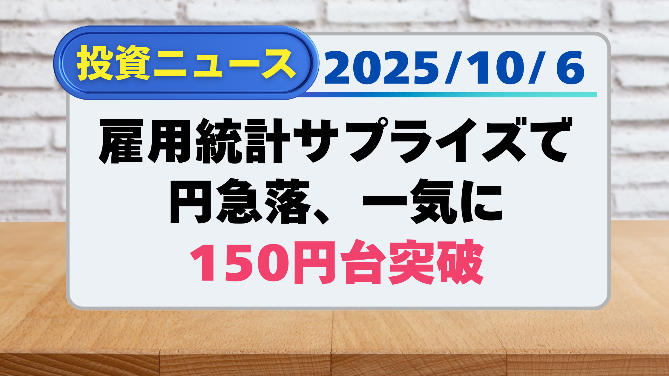 【投資ニュース】雇用統計サプライズで円急落、一気に150円台突破(10/6)