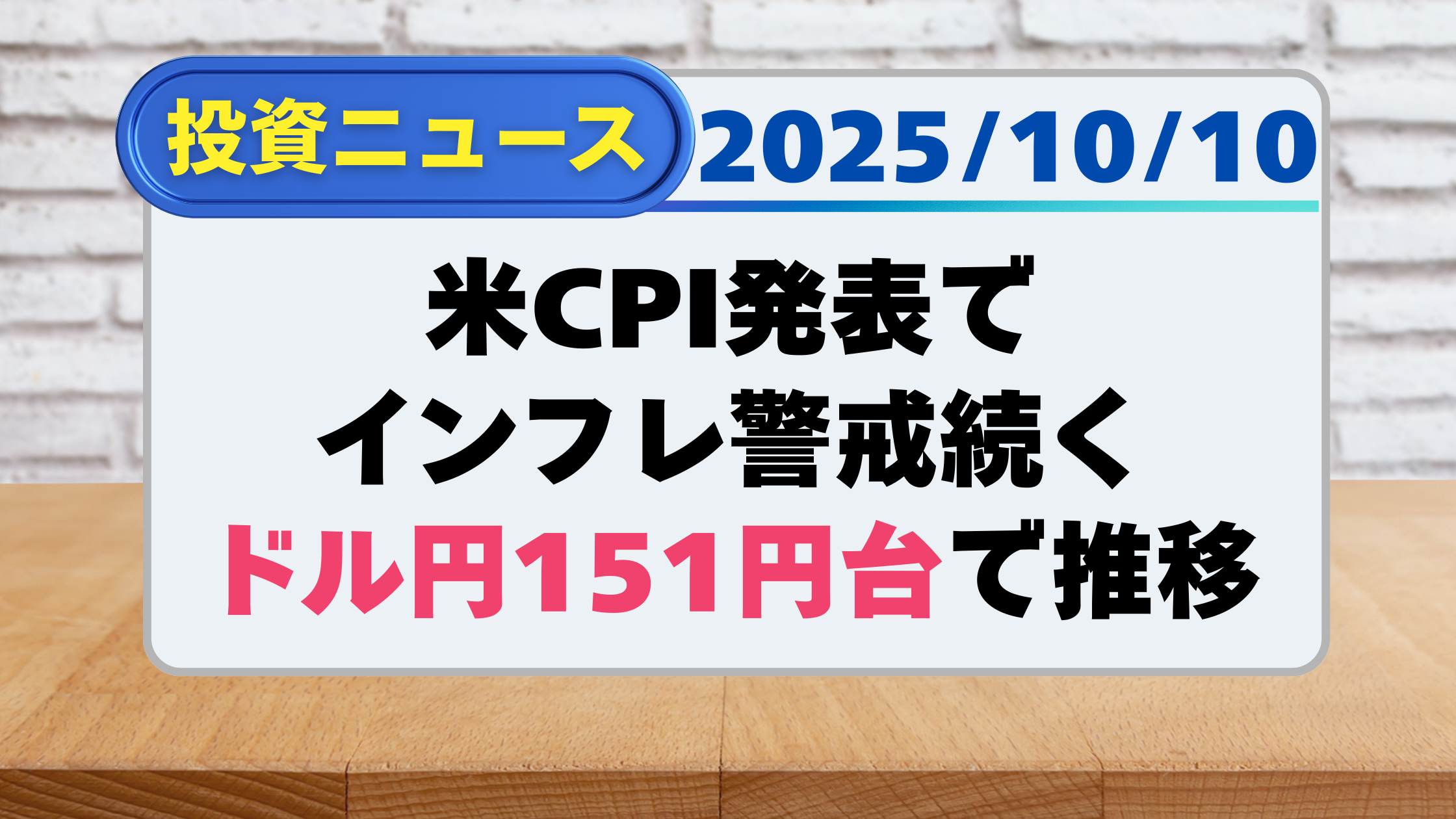 【投資ニュース】米CPI発表でインフレ警戒続く、ドル円151円台で推移(10/10)