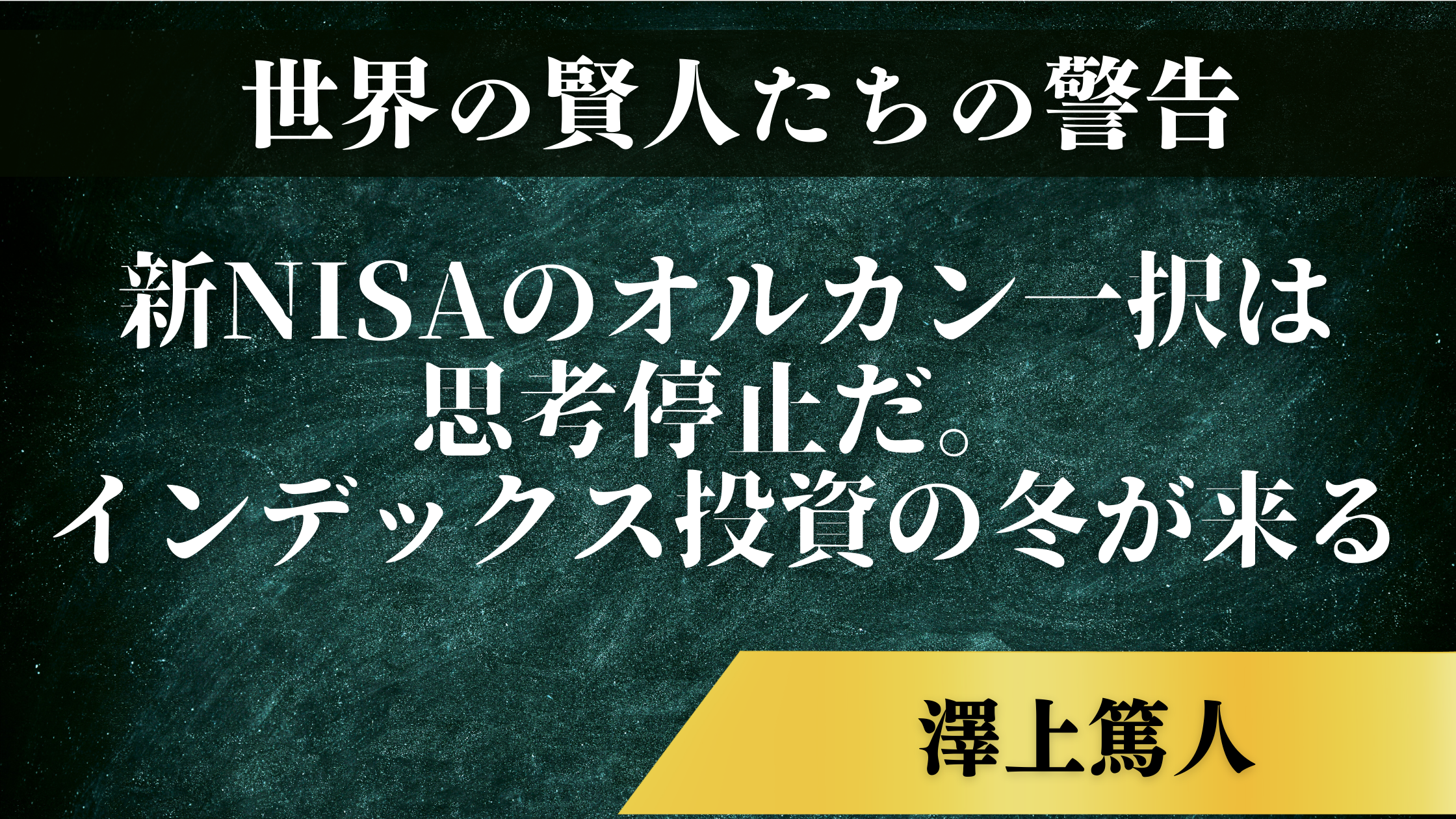 【世界の賢人たちの警告】澤上篤人「新NISAのオルカン一択は思考停止だ。インデックス投資の冬が来る」📉❄️
